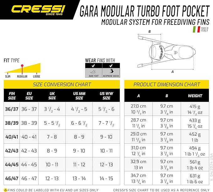 PŁETWY CRESSI GARA TURBO FLEX DO NURKOWANIA SNORKELINGU R. 36/37 CZARNE