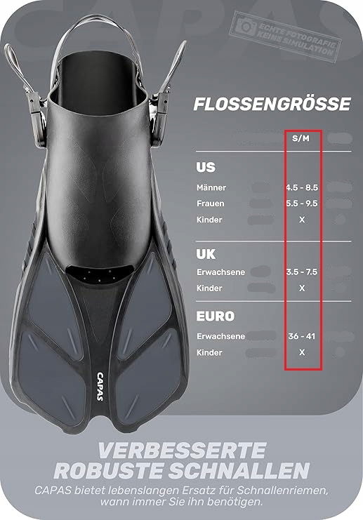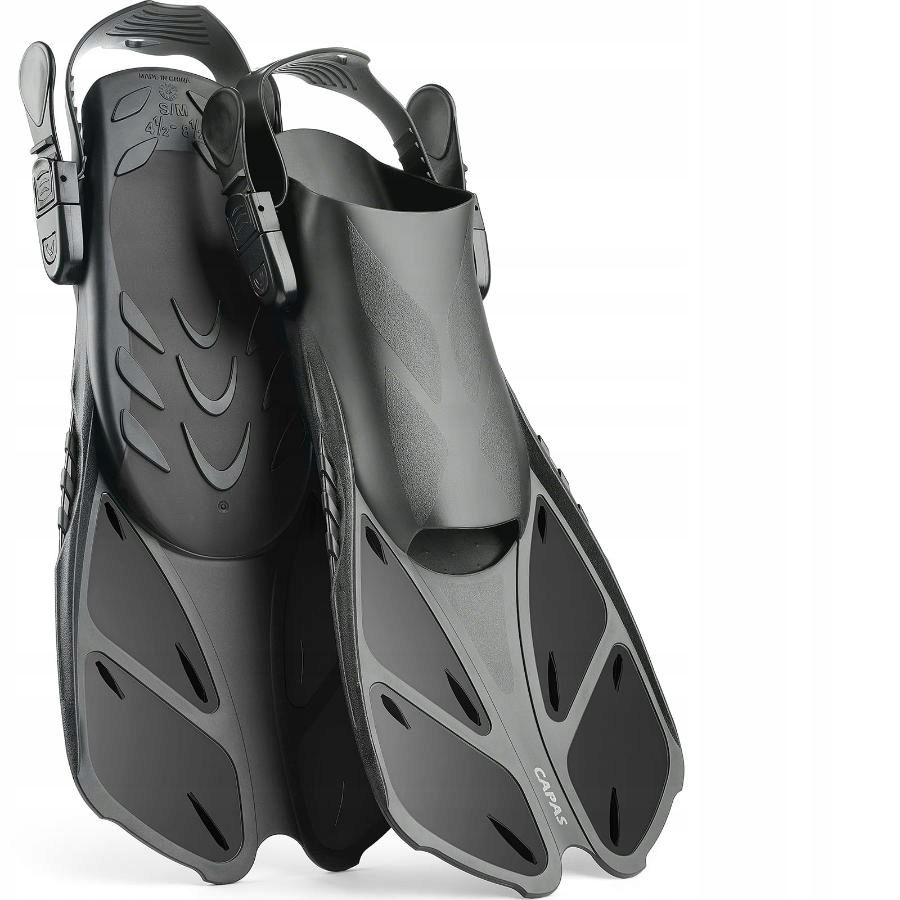 CAPAS Płetwy do nurkowania, rozmiar podróżny, krótkie, regulowane, otwarta pięta, S/M Roz. 36-41 Czarne