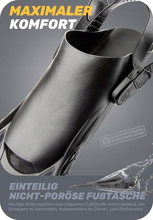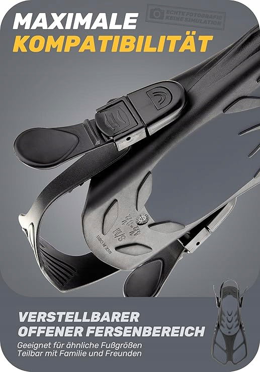 - Regulowana konstrukcja z otwartym obcasem, dobra do dzielenia się – konstrukcja z otwartym obcasem oznacza, że każda płetwa może pomieścić większy wybór rozmiarów, dzięki czemu członkowie rodziny lub przyjaciele mogą łatwiej dzielić się sprzętem. Najlepsze jest to, że podkładki filtrujące w płetwach utrzymują swój kształt podczas przechowywania.