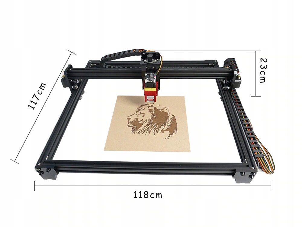 Największy ploter laserowy 100 cm x 100 cm do samodzielnego montażu z głowicą laserową o mocy 15W lub 5500mW (5,5W).