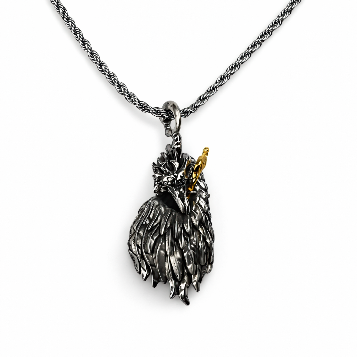 Na polach bitew i na pograniczu Osnowy w świecie Warhammera nic nie jest stałe — a Plumes Of Change pozwala Ci nosić ten „zmienny”, magiczny klimat z dumą. Przy 5 cm ta metalowa zawieszka–brelok robi mocne wrażenie, ale nie jest przesadzona rozmiarem, więc świetnie pasuje do codziennych rzeczy, jeśli chcesz przemycić odrobinę mroczniejszej estetyki uniwersum. Całość wygląda jak gęsty pęk piór: warstwowe, „piórkowe” elementy spływają w dół, a ostre krawędzie, fazowania i zagłębienia ładnie rysują fakturę. Polerowany, ciemnosrebrny połysk daje mocne refleksy, a cienie w rowkach dodają głębi; przy górze widać ozdobny, niemal „maskowy” detal i ciepły złoty akcent, który tworzy fajny, dwukolorowy efekt. Ponieważ to metal, zawieszka zachowuje swój błysk i ostrość detalu nawet przy częstym używaniu — czy to przy kluczach, na plecaku, smyczy albo pasku torby. Skręcany łańcuszek i solidne zapięcie są po prostu praktyczne, a rzeźbiona forma łapie światło z każdej strony, przywołując barokowy styl talizmanów kojarzonych z Chaosem i „ptasie” motywy czarodziejskiej symboliki obecne w tym świecie. Jeśli szukasz czegoś, co wygląda efektownie, jest dopracowane i aż prosi się, żeby zabrać je ze sobą — przypnij i niech wejdzie do Twojego zestawu.