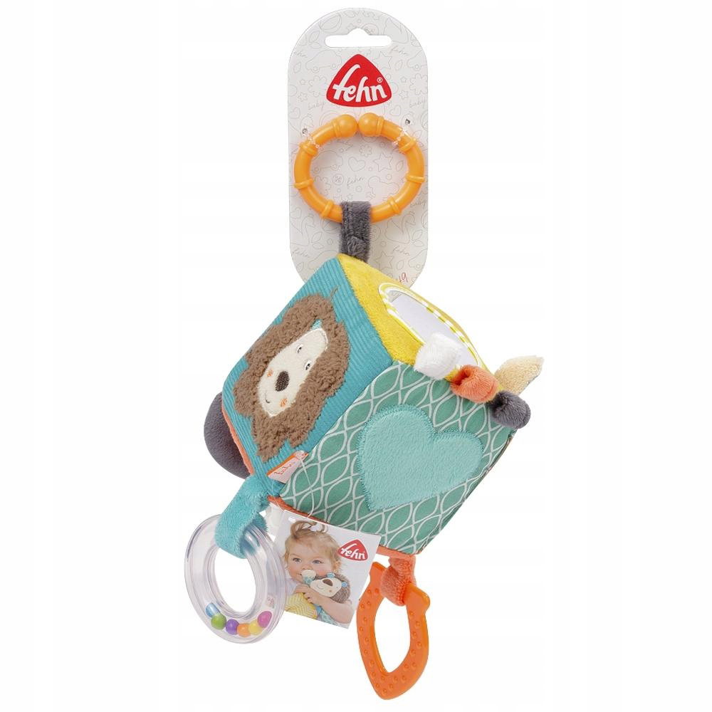 Kostka edukacyjna, z kolekcji: Zabawni Przyjaciele Zabawka oferuje wszystko co sprawia, że serca małych odkrywców biją szybciej. Różnorodność kolorów i materiałowa mieszanka miękkiego weluru, dżerseju i flaneli, zapraszają do dotykania i głaskania. Zastosowane formy i zwierzęta, bezpieczne lusterko oraz ukryty kieszonka, szczególnie pobudzają wrażenia dotykowe i wzrokowe. Edukacyjna kostka jest zawsze czymś nowym. Zachęca do chwytania i wyzwala chęć zabawy. Dzwonek w środku radośnie dzwoni. W małym, bezpiecznym lusterku można się przeglądać. Szybko staje się więc wiernym towarzyszem w domu i w podróży zawsze zapewniając dobry nastrój! Kostka wykonana jest z wielu, miłych w dotyku, materiałów. Rozwija logiczne myślenie, koncentrację, małą motorykę. Wzbudza ciekawość i stymuluje percepcję dziecka. Gryzaczek łagodzi ból podczas ząbkowania. Grzechotka, dzwoneczek i bezpieczne lusterko, szeleszczący papier i piszczałka, wyzwalają chęć zabawy. Łatwa w montażu. Można prać. Rozmiar : 10 x 10 cm. Wszystkie zabawki niemieckiej marki FEHN są bezpieczne dla dzieci od 0 lat. wykonane są z najlepszej jakości materiałów. spełniają normy EN71, CE, badane w instytutach ""Stiftung Warentest"" lub ""Ökotest". 66029