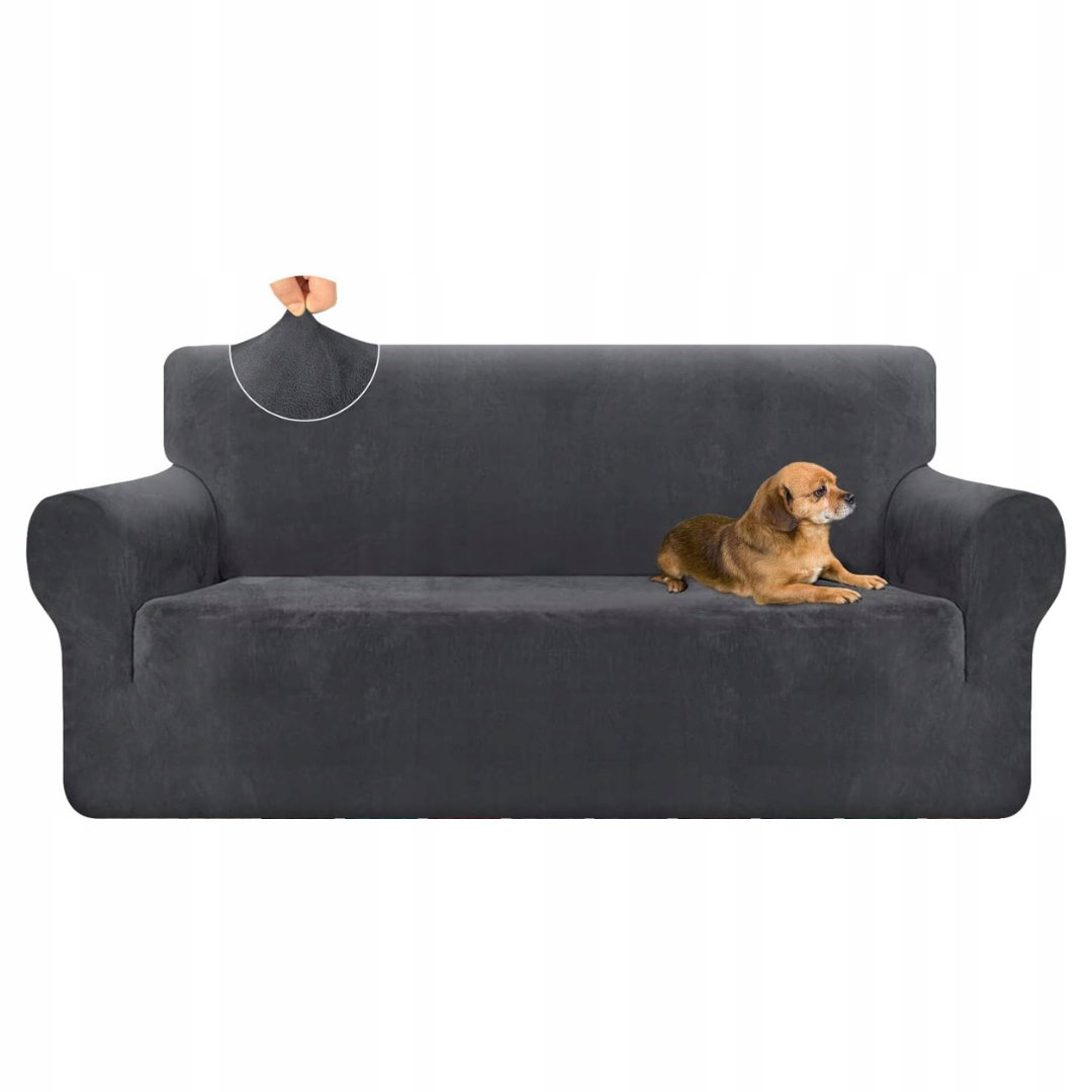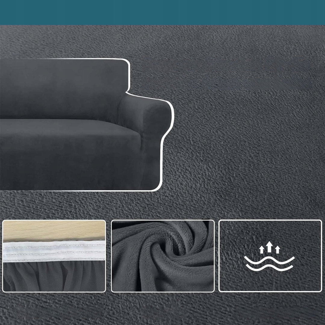 Pluszowy pokrowiec na sofę 3-osobową 185-235 cm jasnoszary elastyczny.