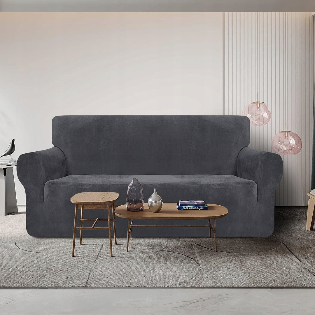 Granbest, bardzo miękki pluszowy pokrowiec na sofę, elastyczny pokrowiec na fotel, ochrona mebli do salonu, antypoślizgowy, 3-osobowa, kolor jasnoszary, 185 x 235 cm