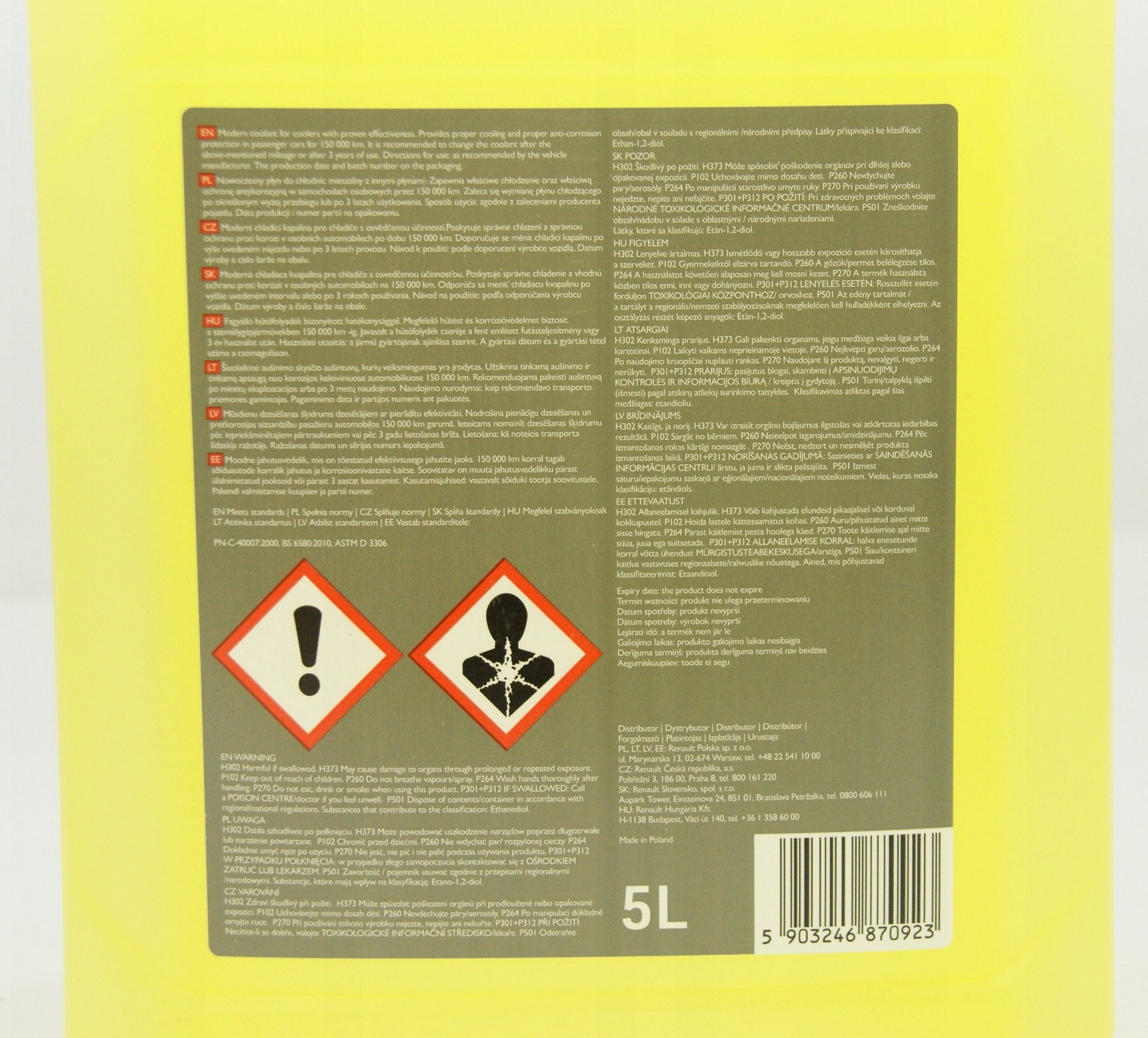 ORYGINALNY ŻÓŁTY Płyn chłodniczy Renault Dacia Nissan Motrio 8660006880 5L -35°C G12