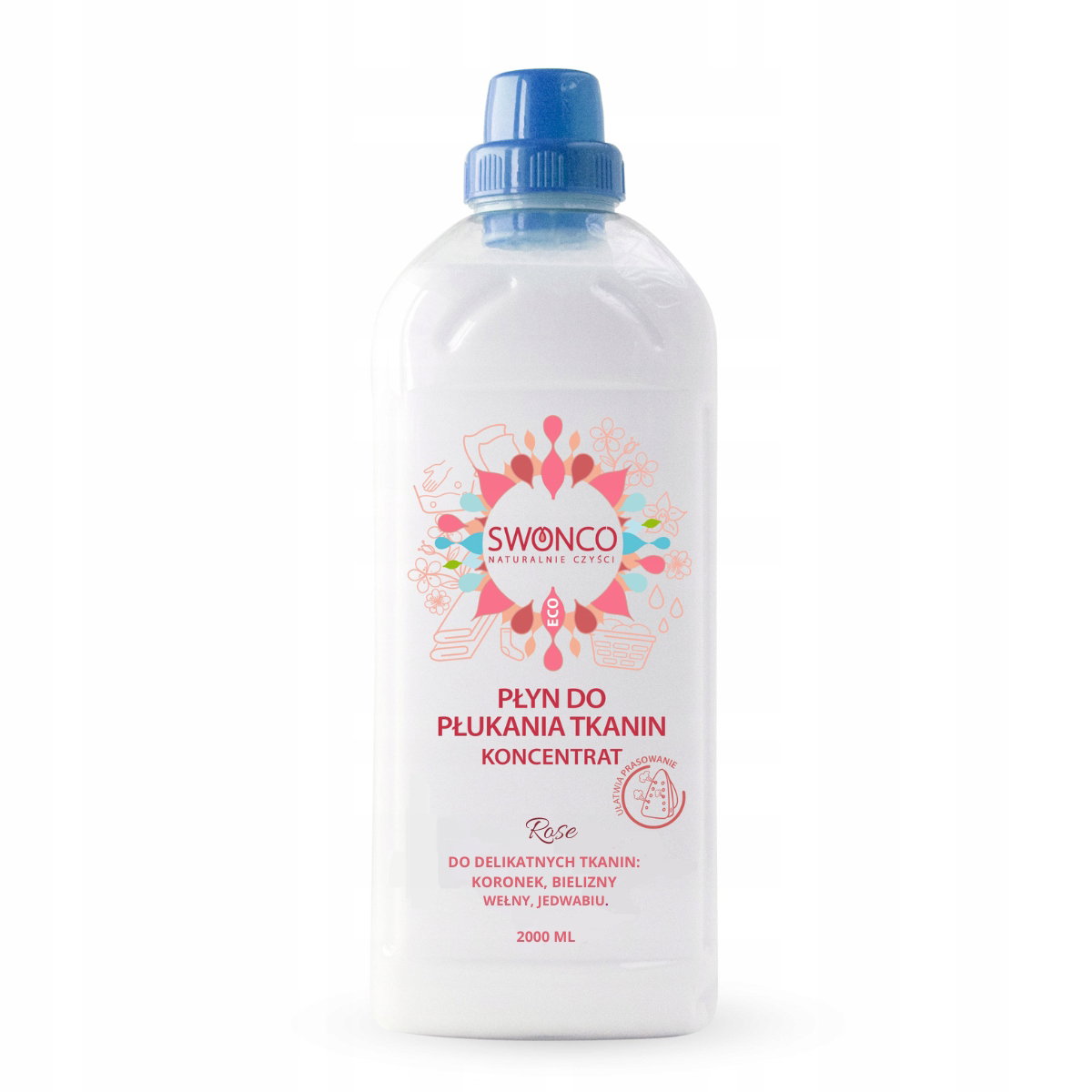 Ekologiczny płyn do płukania tkanin SWONCO Rose to idealne uzupełnienie prania – zapewnia świeżość, delikatność i bezpieczeństwo dla całej rodziny.