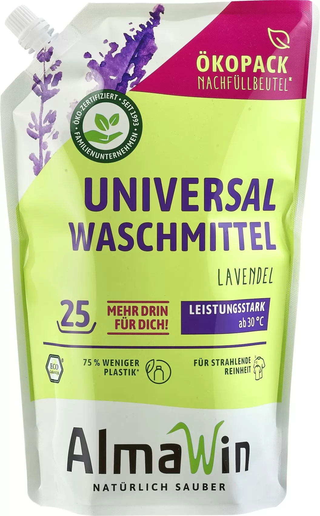 Nadaje się do wszystkich białych i kolorowych ubrań z wyjątkiem wełny i jedwabiu. Wskazówka: dodaj wybielacz tlenowy Almawin, aby uzyskać lśniące białe pranie.