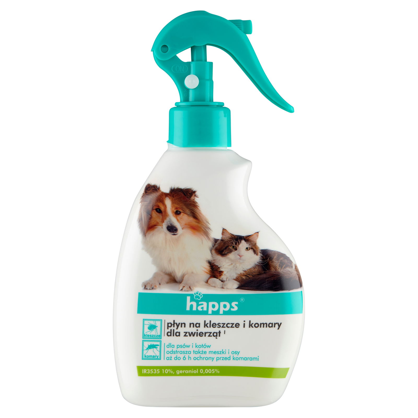 - płyn na komary i kleszcze dla zwierząt znanej marki Happs,