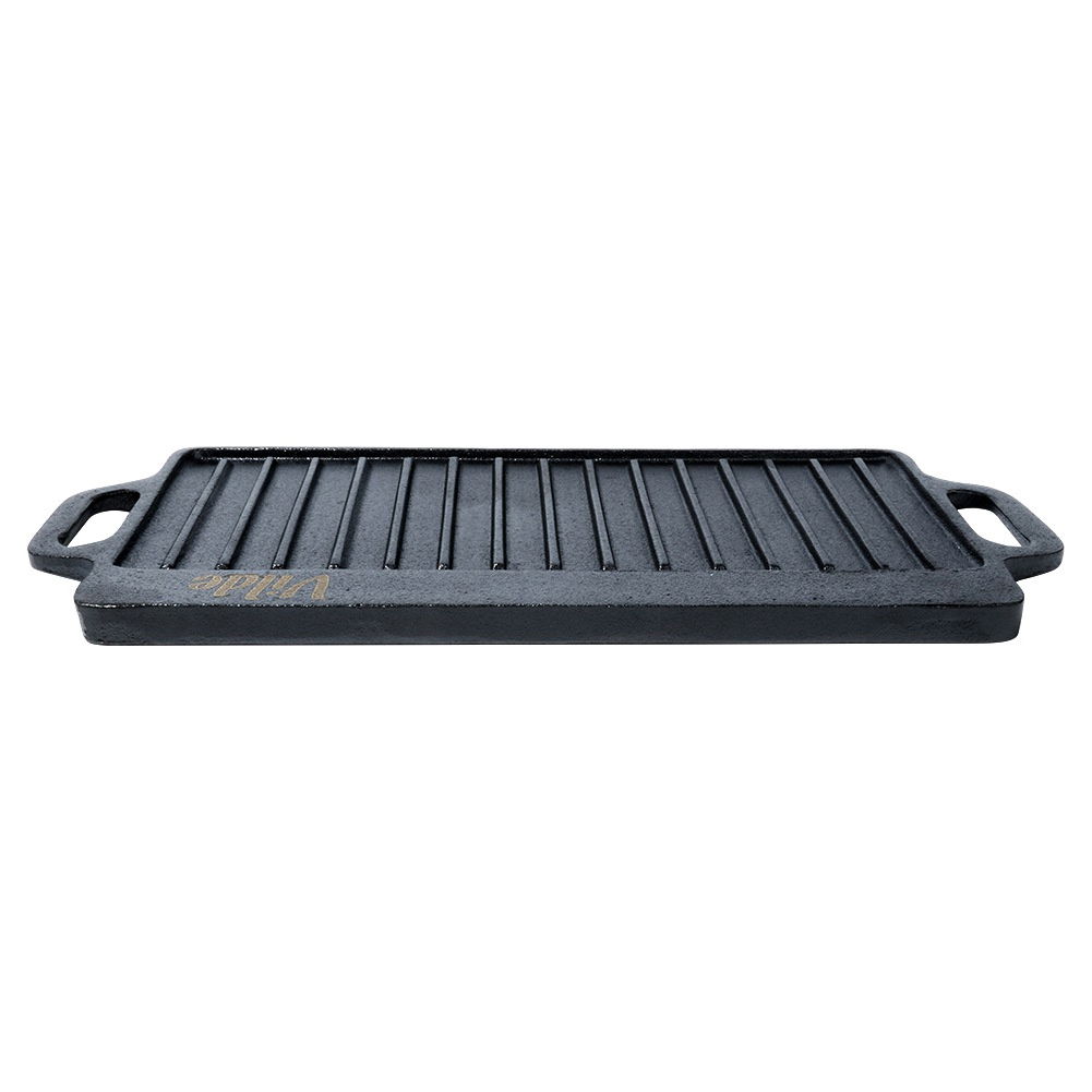 Dwustronna płyta grillowa wykonana z żeliwa. Karbowana do grillowania mięs, ryb i warzyw. Do zastosowania w piekarniku, na grillu lub kuchence. Odporna na wysokie temperatury.