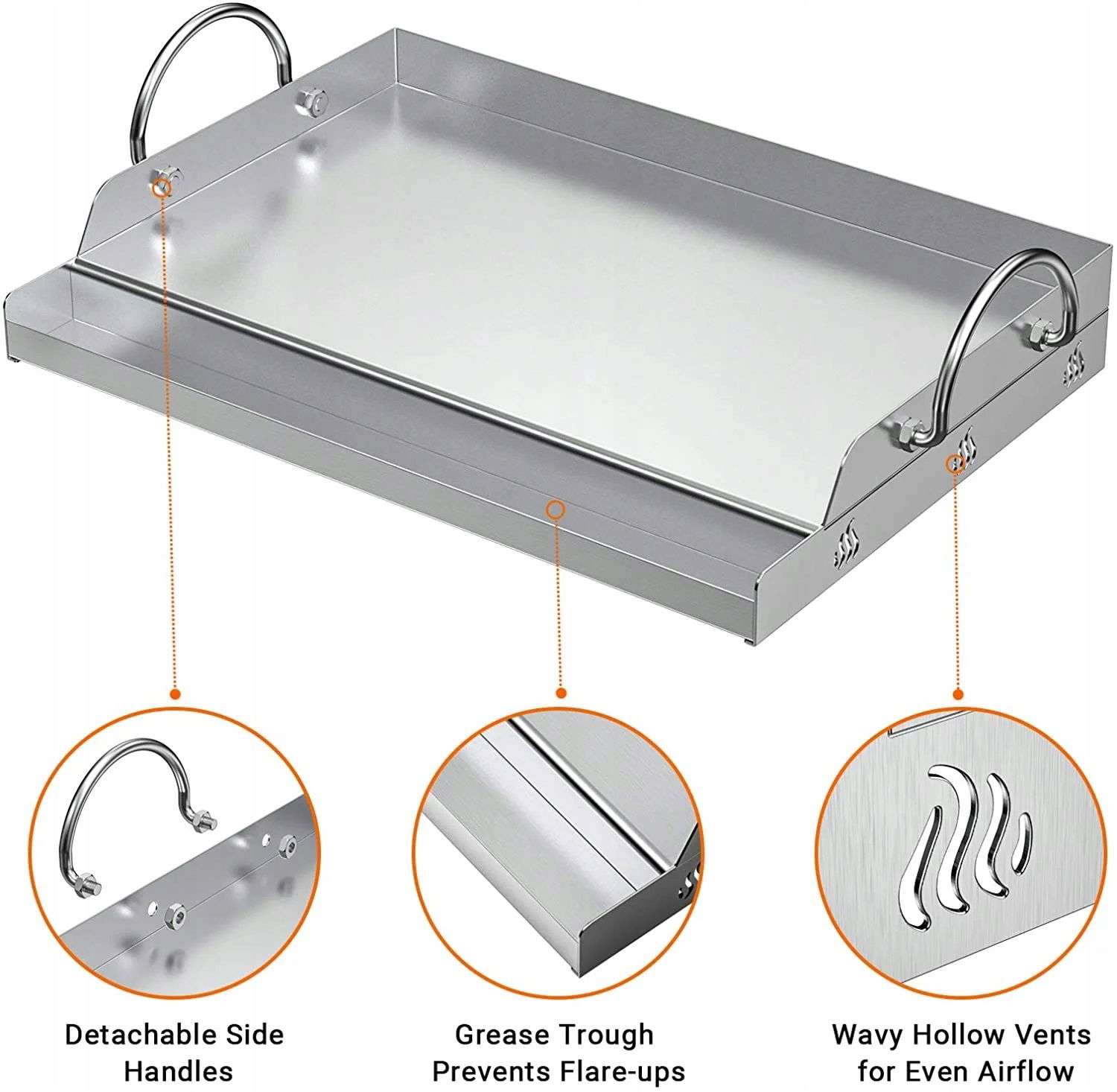 Uniwersalna płyta grillowa z wysokiej jakości stali nierdzewnej o grubości 1,2 mm. Jej wymiar idealnie pasuje do większości grillów gazowych, umożliwiając komfortowe gotowanie bez przywierania potraw.