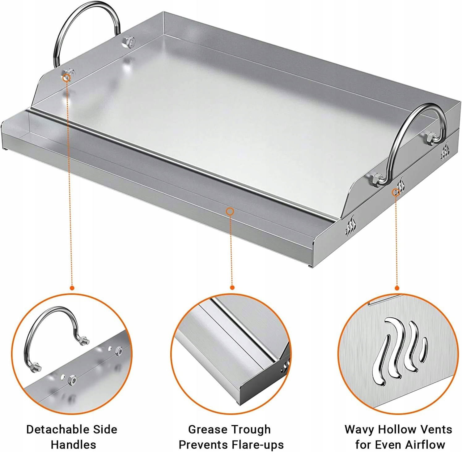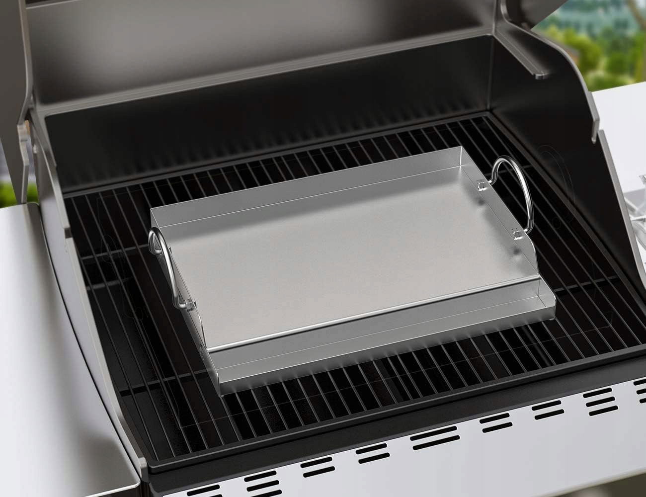 Stabilne poprzeczne podpory zapewniają równomierne ogrzewanie i trwałość. Idealnie pasuje do większości grilli gazowych. Ściany boczne umożliwiają wygodne obracanie potraw, co znacząco ułatwia przygotowanie dań.