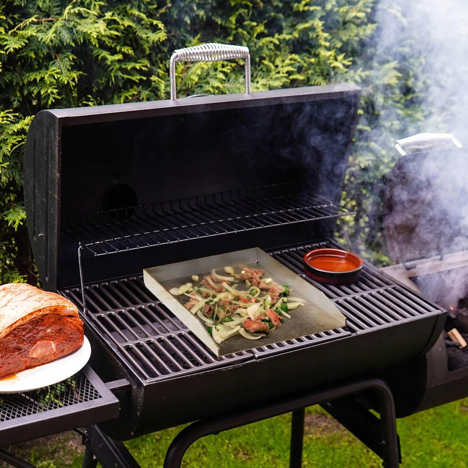 - Zastosowanie: płyta grillowa umożliwia przygotowywanie potraw, które trudno grillować na klasycznym ruszcie, takich jak jajka sadzone, naleśniki, warzywa, owoce morza czy drobne kawałki mięsa. Dzięki gładkiej powierzchni składniki nie wpadają między szczeliny rusztu, a grillowanie staje się bardziej komfortowe i precyzyjne. Uniwersalna konstrukcja sprawia, że plancha pasuje do grilli Napoleon Rogue (również z palnikiem tylnym), grilli węglowych Weber oraz większości innych modeli, dzięki czemu sprawdzi się podczas grillowania w ogrodzie, na tarasie lub podczas wyjazdów na kemping.