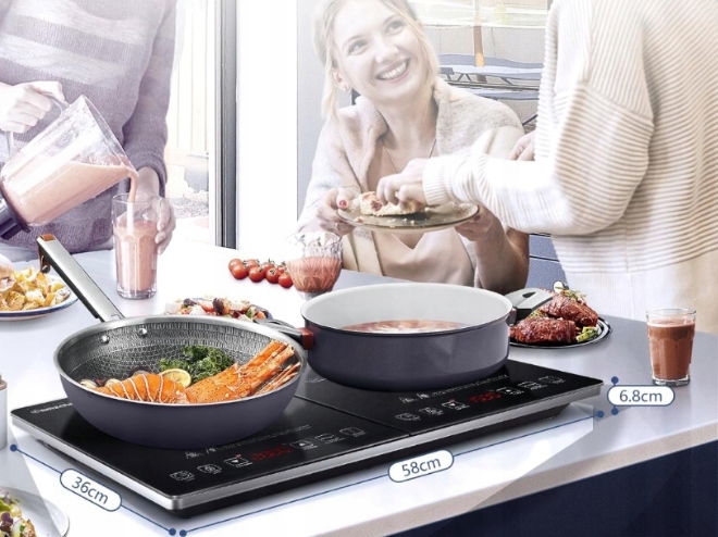 - ✴️【Wygodne przygotowywanie dwóch dań jednocześnie】 Przenośna płyta indukcyjna, wyposażona w dwie niezależne strefy grzewcze, pozwala na ustawienie każdej z nich osobno lub używanie ich razem, aby skrócić czas gotowania. Ciesz się dłuższym czasem spędzonym z rodziną. To również doskonały partner do gotowania na weekendowych imprezach, festiwalach itp.