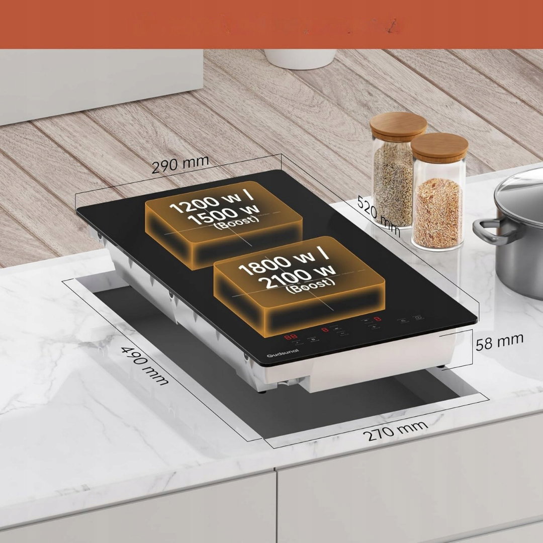 Płyta Indukcyjna kuchenna 2 palniki 3600W GUDSUNAL 9 poziomów mocy 29 cm