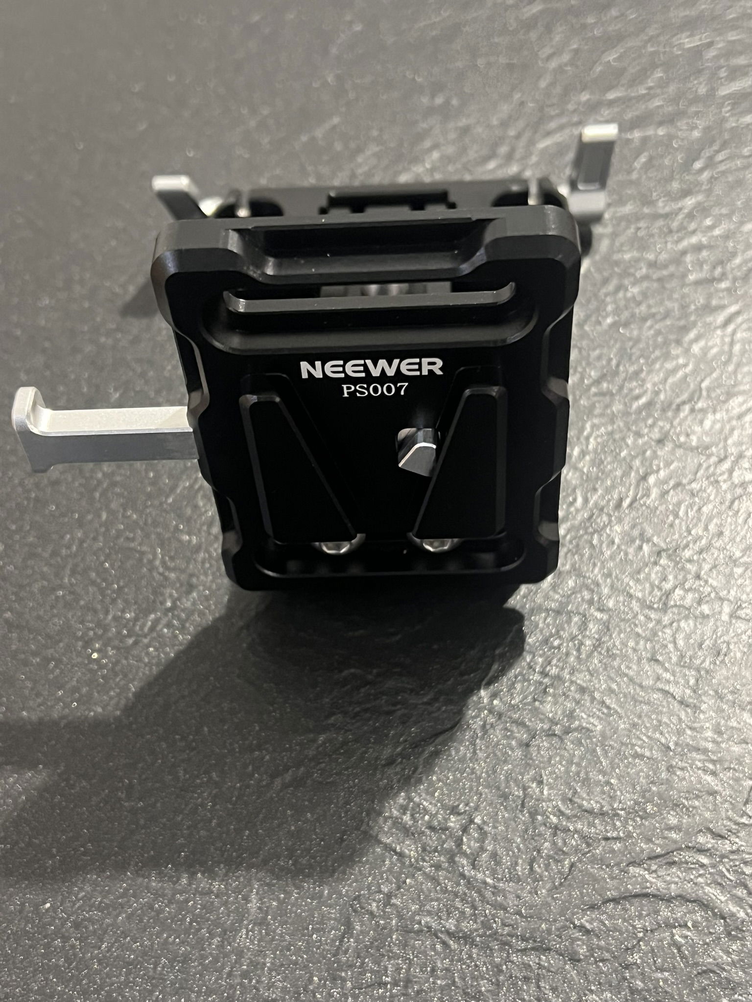 Płytka akumulatorowa Neewer Mini V Mount z zaciskami prętowymi LWS 15 mm, składana, pochylana o 180°, płytka akumulatorowa w kształcie litery L z blokadą V i przyciskiem szybkiego zwalniania, kompatybilna z zestawem naramiennym SmallRig Sony FXLION Nano, PS007