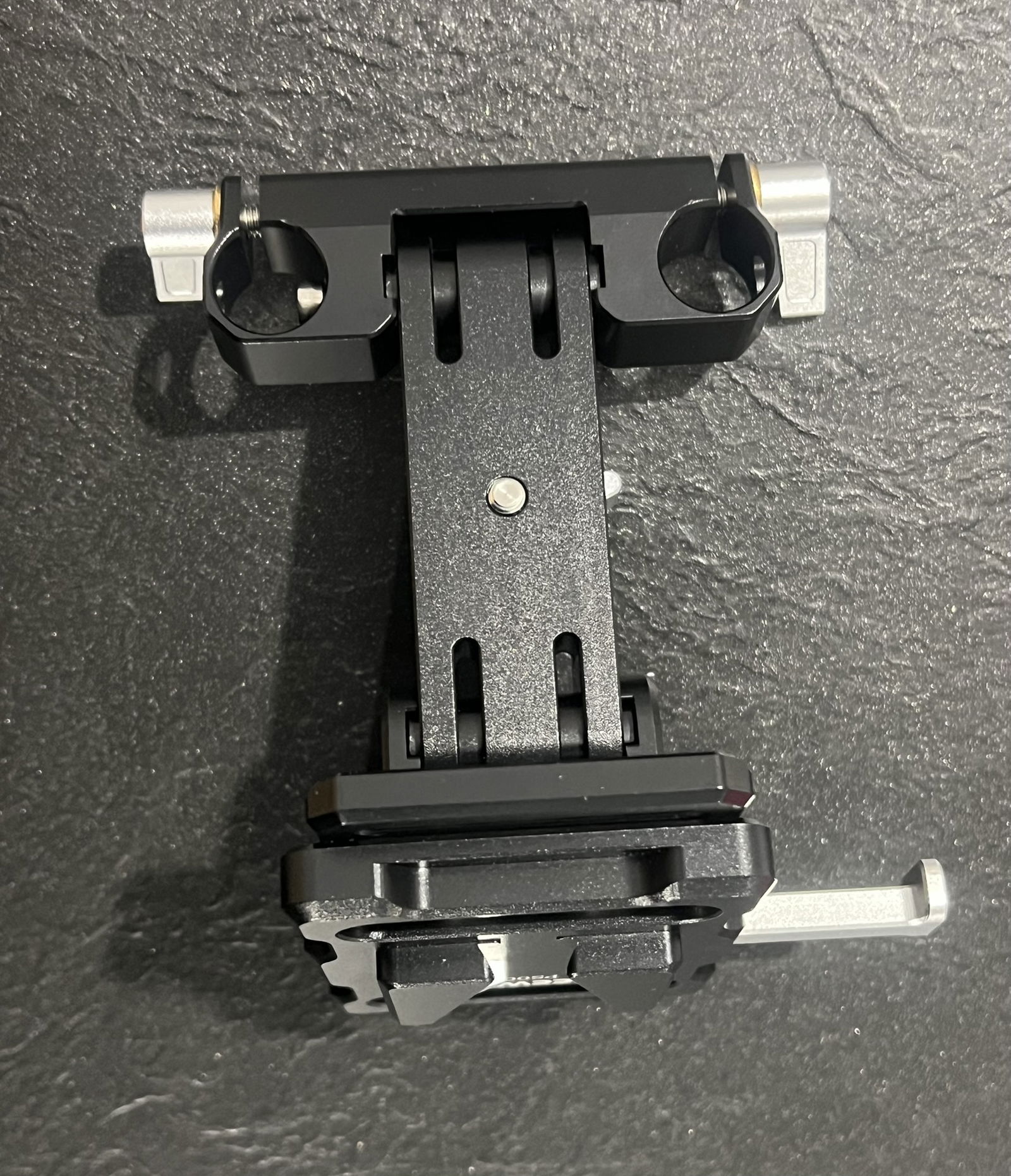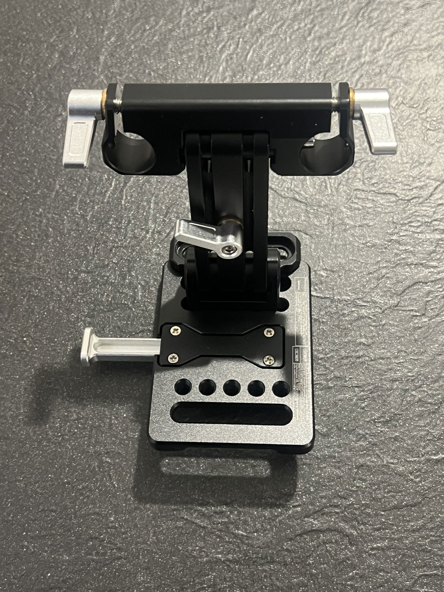 Odchylana i składana o 180°: Składana płytka akumulatora w kształcie litery L z dwoma zaciskami prętowymi 15 mm może być odchylana o 180°, aby uzyskać pożądany kąt – pokrętło śrubowe kontroluje naprężenie odchylenia i blokuje je w miejscu. Dwie części można złożyć na płasko, co ułatwia przechowywanie, zapewniając swobodny dostęp do odchylanego ekranu i innych funkcji aparatu. Ta płytka akumulatora może również służyć jako przeciwwaga po zamocowaniu na tylnym końcu rigu naramiennego.