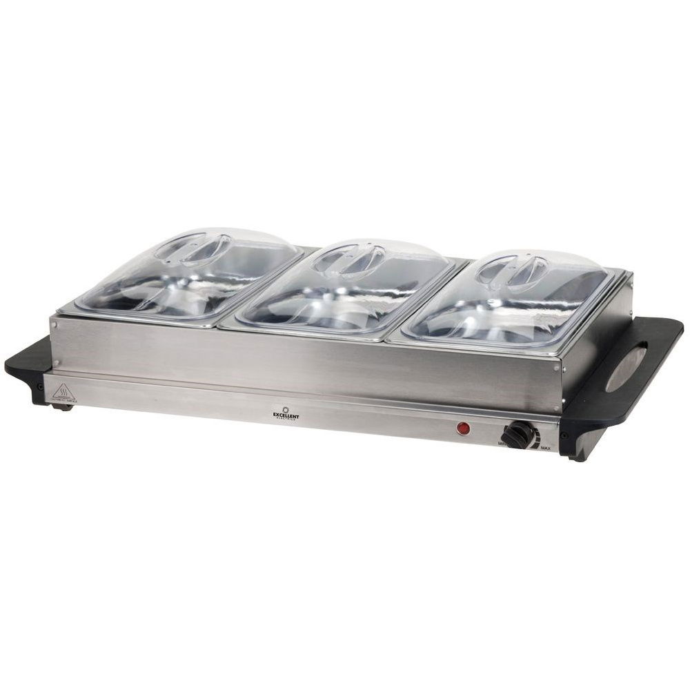 Podgrzewacz bufetowy posiada uniwersalne zastosowanie. Przydatny zarówno w gastronomii, jak i w użytku domowym. Z jego pomocą możemy utrzymywać ciepło serwowanych potraw. Trzy pojemniki pozwolą na podgrzewanie trzech różnych potraw. Uniwersalne zastosowanie sprawdzi się również do podgrzewania talerzy.