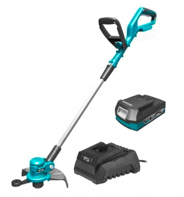 To urządzenie przeznaczone do koszenia i pielęgnowania trawników. Sprawdzi się idealnie w trudno dostępnych miejscach, przy obrzeżach czy płotach. Średnica koszenia wynosi 300mm, grubość żyłki 1,6mm wraz z prędkością obrotową 8500 obr/min zapewniają skuteczne i szybkie koszenie. Urządzenie posiada teleskopową rękojeść, uchwyt pomocniczy regulowany w kilku płaszczyznach. Regulowany kąt nachylenia głowicy oraz lekka konstrukcja wpływają na zwiększony komfort pracy. Blokada włącznika posiada zabezpieczenie przed przypadkowym włączeniem.
