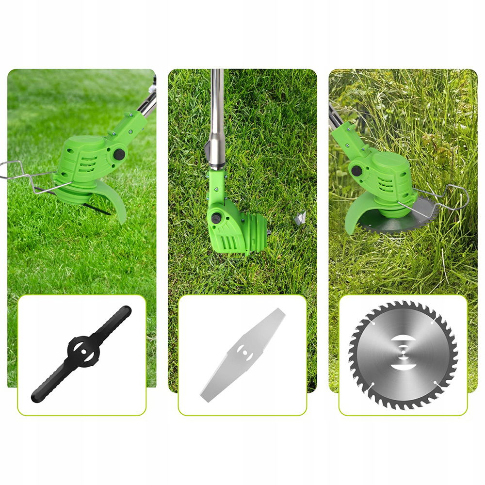 Kosiarka jest wyposażona w 3 różne ostrza, dzięki czemu nadaje się do różnych scenariuszy. Dwa 6-calowe metalowe ostrza umożliwiają cięcie gałęzi i mocnych krzewów, a 6-calowe metalowe ostrza radzą sobie z chwastami i grubszą trawą w trudnym terenie. 10 plastikowych ostrzy idealnie nadaje się do przycinania krawędzi trawnika. Czy to w ogrodzie, na pastwisku, czy na podwórku - ta akumulatorowa kosa do zarośli okaże się niezwykle przydatna