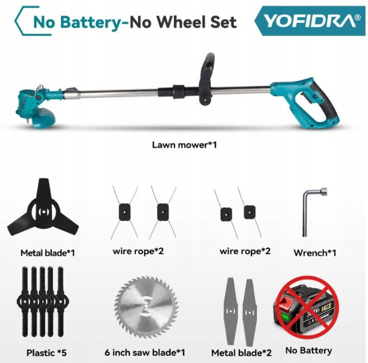 Podkaszarka do trawy akumulatorowa - Uwaga : Ten model nie posiada baterii i kół