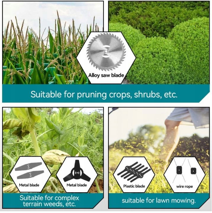 Podkaszarka akumulatorowa pełni funkcję trzech urządzeń w jednym: podkaszarki, mini kosiarki oraz przycinarki do krawędzi. Dzięki temu jest wszechstronna i idealna do różnych zastosowań w ogrodzie.
