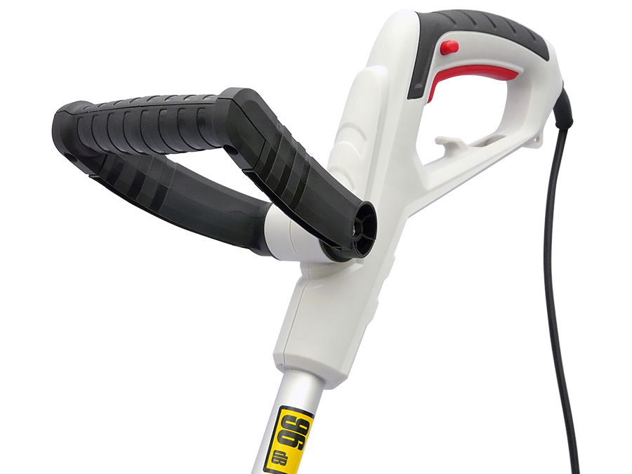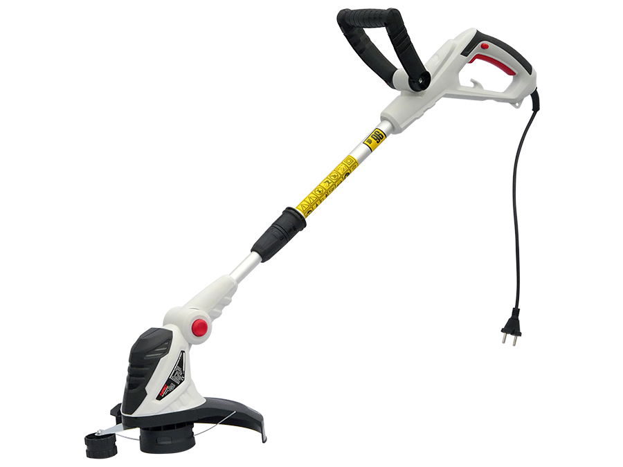 Podkaszarka elektryczna o moc silnika 550 W. Wersja z teleskopową regulacją długości, pochylaną rękojeścią i regulowanym położeniem głowicy.