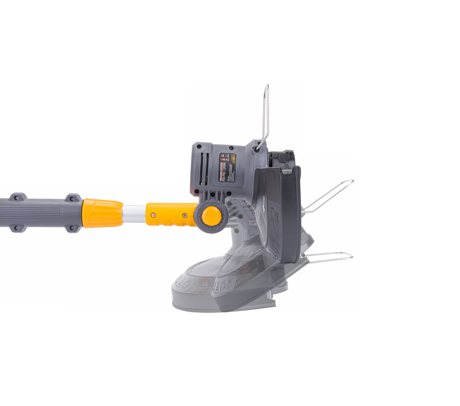 Poza regulacją uchwytu, podkaszarka elektryczna również posiada funkcję obrotu całej rączki względem głowicy z silnikiem.