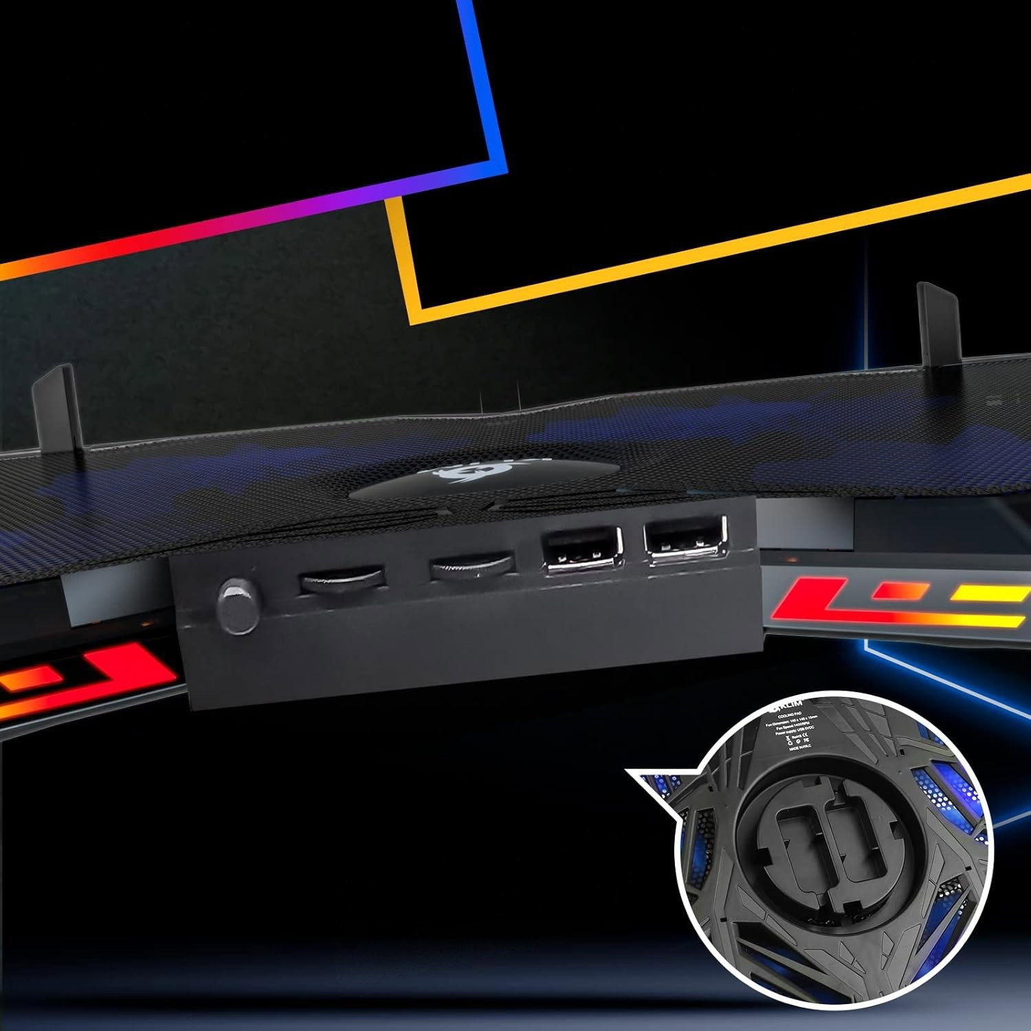 - Podświetlenie RGB i funkcjonalność: nowoczesny design został wzbogacony o podświetlenie RGB z 7 kolorami i 3 efektami świetlnymi, które nadaje stanowisku komputerowemu gamingowy charakter. Podstawka wyposażona jest w 2 porty USB, dzięki czemu po podłączeniu nadal pozostaje wolne gniazdo do innych urządzeń. Dodatkowy system prowadzenia przewodów pod spodem pomaga utrzymać porządek na biurku.