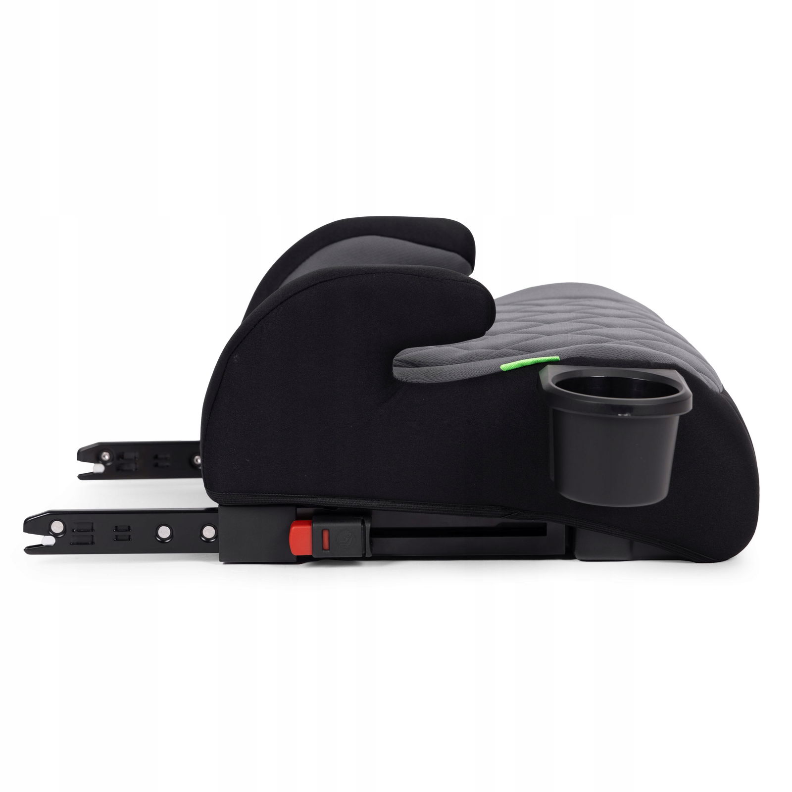 System ISOFIX sprawia, że montaż podkładki jest szybki, prosty i intuicyjny. Wystarczy kilka chwil, by bezpiecznie przymocować ją do fotela samochodowego, co pozwala zaoszczędzić czas i uniknąć frustracji. Aby wysunąć zaczepy mocujące, należy nacisnąć przycisk blokady i przesunąć podkładkę w bok. Prawidłowe wpięcie zostaje potwierdzone zmianą koloru wskaźnika – z czerwonego na zielony.