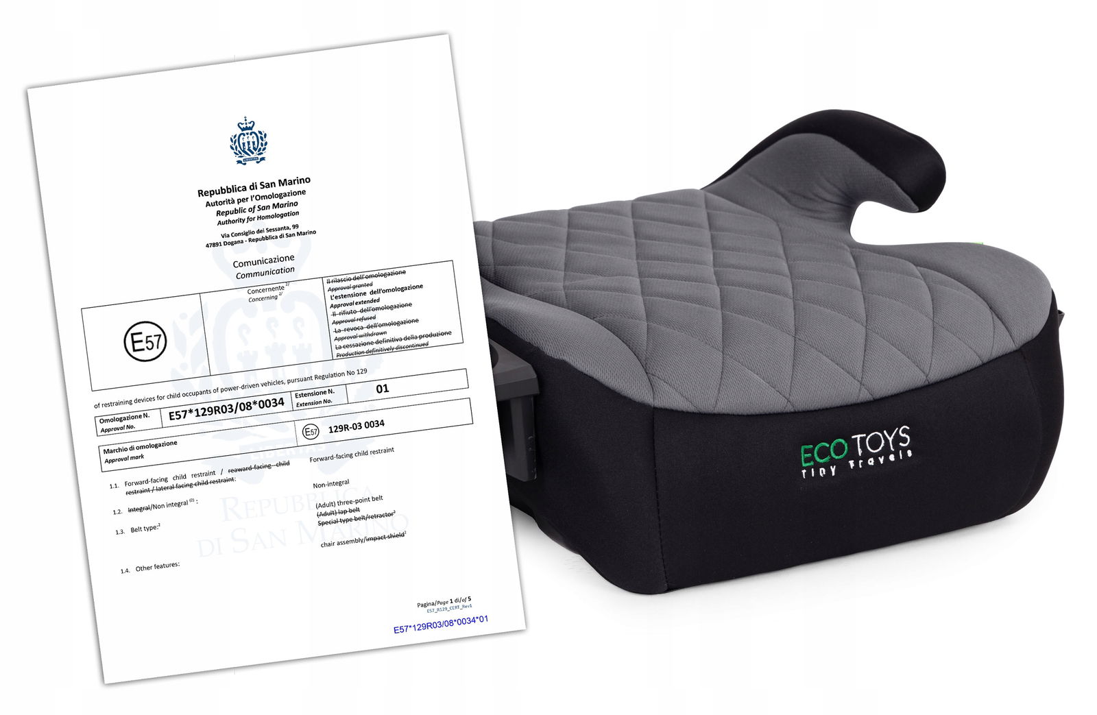 Podkładka samochodowa ECOTOYS spełnia najnowsze europejskie standardy bezpieczeństwa zgodne z regulacją i-Size (ECE R129/03). Ta norma wprowadzona w celu zapewnienia maksymalnego bezpieczeństwa dzieci podczas podróży samochodem, nakłada rygorystyczne wymagania na producentów fotelików i podkładek. Nasz produkt przeszedł wszystkie niezbędne testy, w tym testy zderzeniowe, uzyskując certyfikat i-Size potwierdzający zgodność z wszystkimi wymogami bezpieczeństwa. Dzięki temu masz pewność, że dziecko jest odpowiednio zabezpieczone podczas podróży.