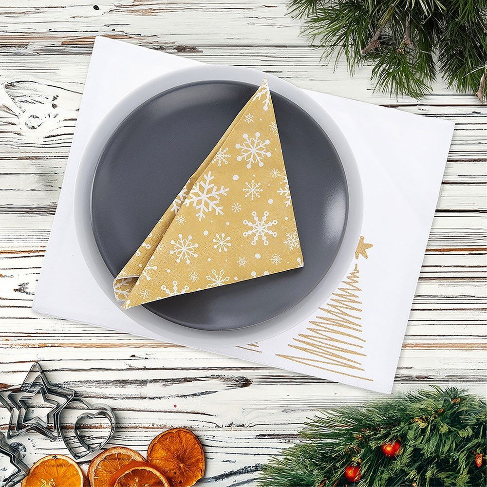 Wykonana z bawełny - Wykonana ze 100% bawełny w białym kolorze z motywem choinek w złotym kolorze. Podkładka jest wytrzymała i pasuje do każdego wnętrza.