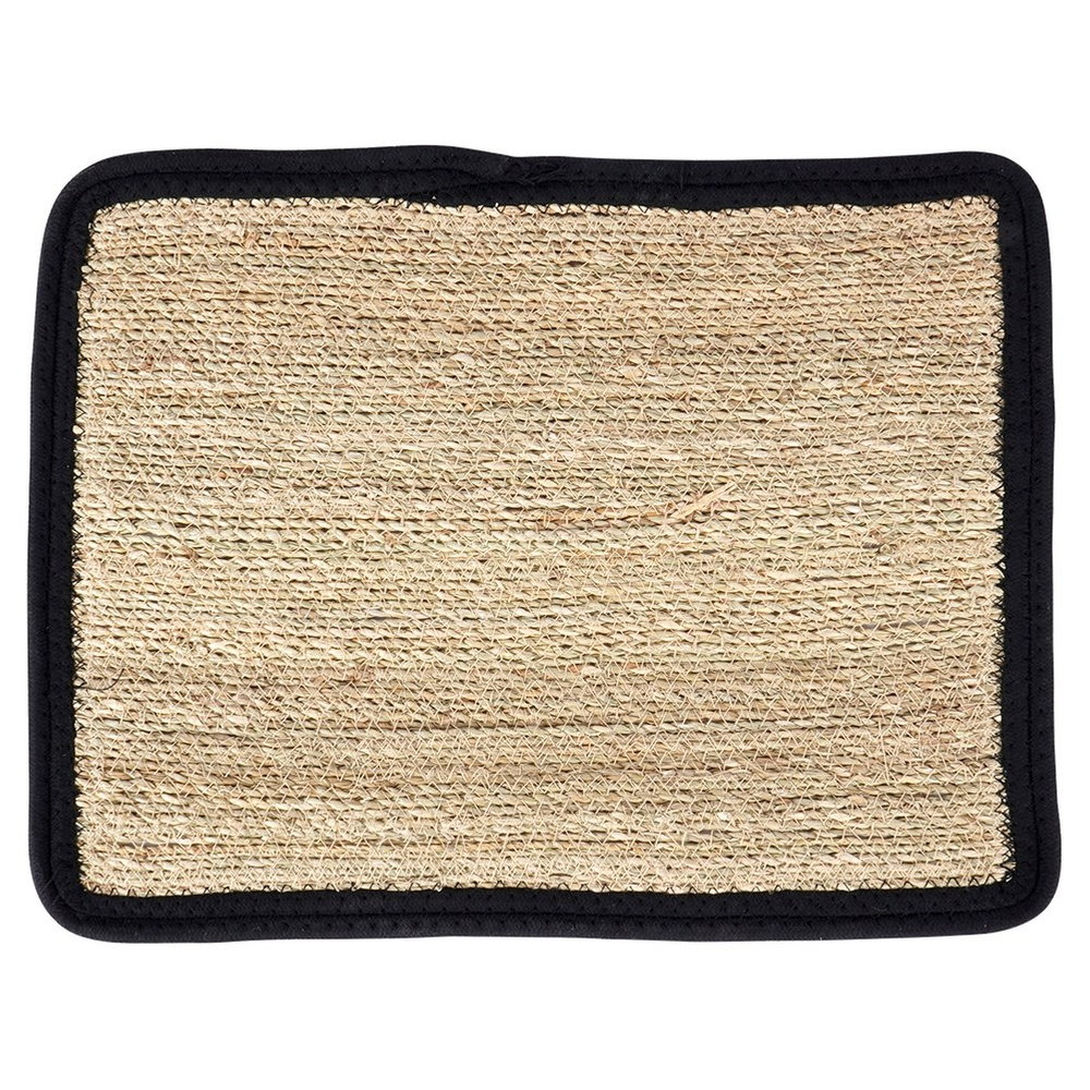 NATURALNA - Wykonana z naturalnej, plecionej trawy morskiej z czarnym, bawełnianym obszyciem. Podkładka jest wytrzymała i efektowna.
