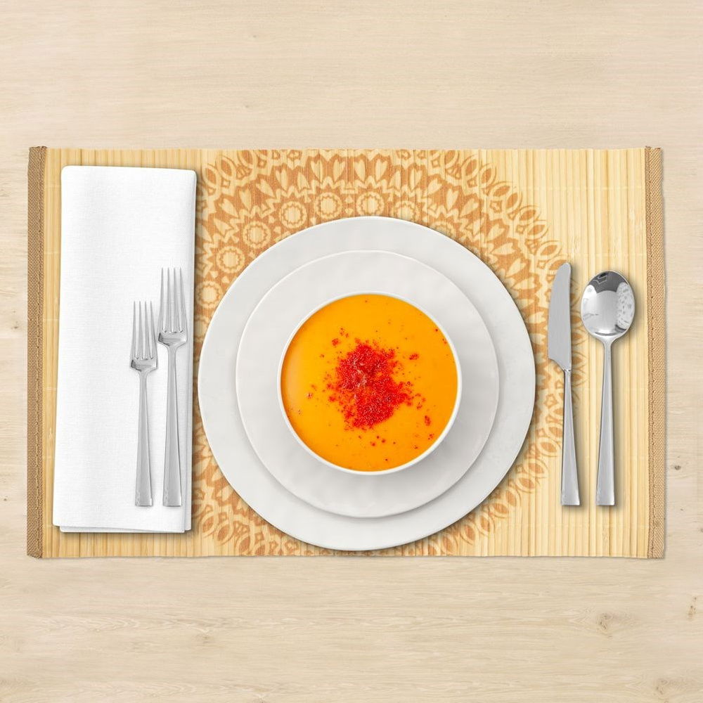 DEKORACYJNA - Niezwykle efektowna dzięki pięknemu wzorowi mandali. Stanowi piękne tło dla zastawy stołowej i sztućców. Podkładka pasuje do każdego wnętrza.
