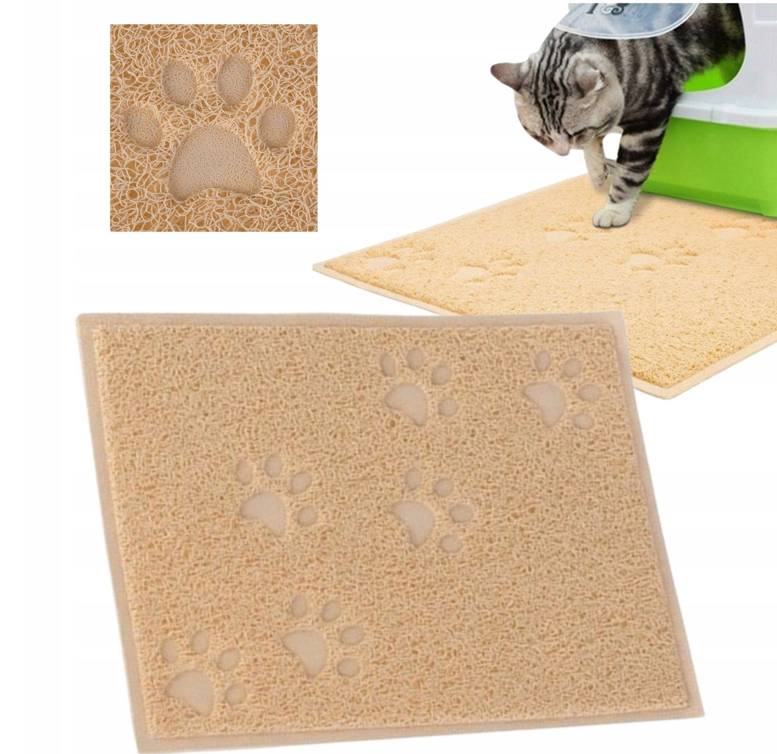 Funkcjonalna: posłuży jako podkładka pod kuwetę, by zapobiegać rozsypywaniu żwirku jak również jako mata pod miseczkę z wodą lub z jedzeniem.
