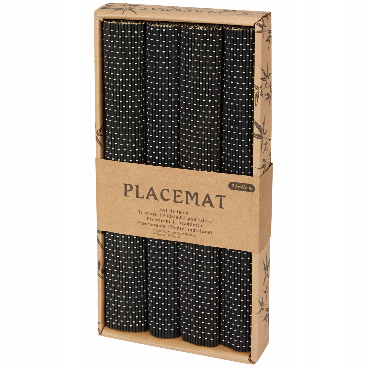 Podkładki pod talerze dekoracyjne bambusowe 4 sztuki czarne kropkowane