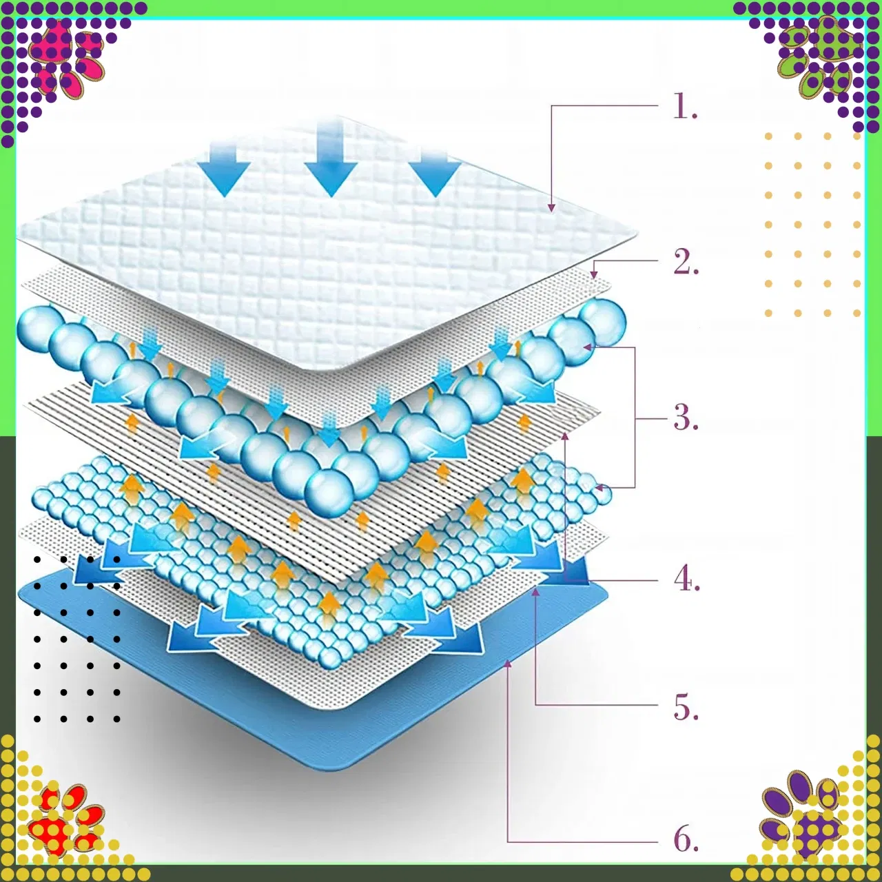 Pięciowarstwowa budowa podkładu gwarantuje optymalną chłonność i trwałość.