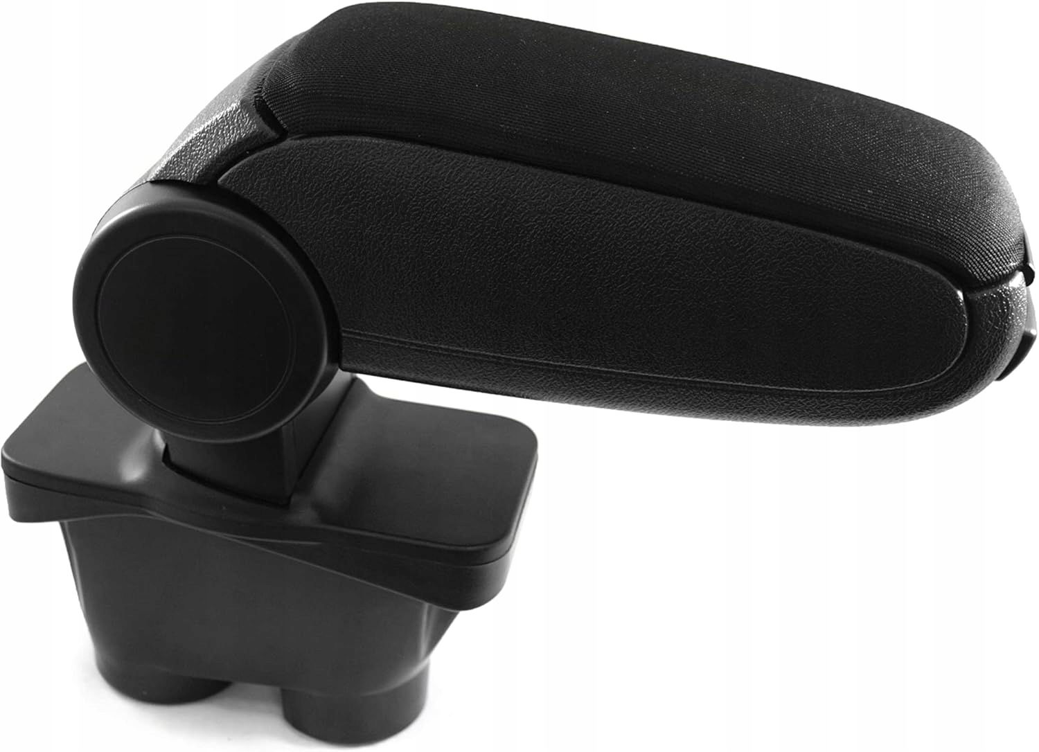 Schowek-podłokietnik do konsoli środkowej, czarny, wykonany z materiałów tekstylnych i tworzywa, pasujący do samochodów z lat 2012-2019. Wykonanie „plug and play” bez potrzeby wiercenia instalacji.