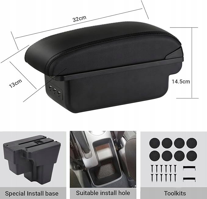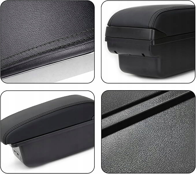 YJYWZH Podłokietnik samochodowy, czarny, skórzany, schowek do przechowywania, elementy do modernizacji wnętrza