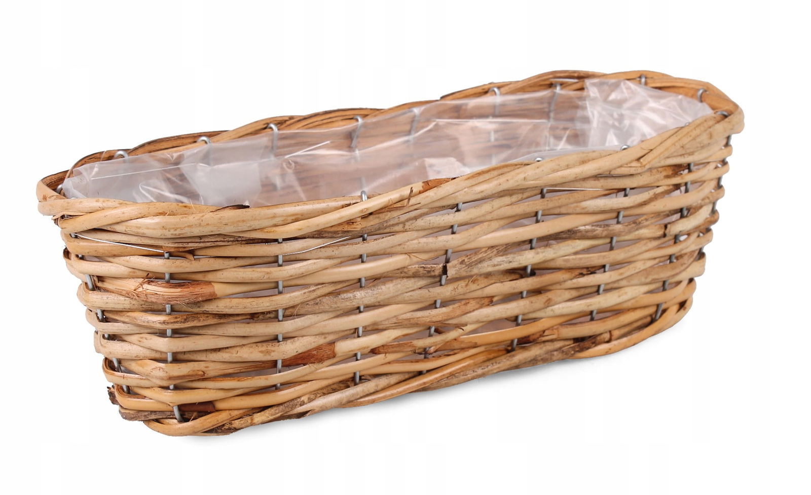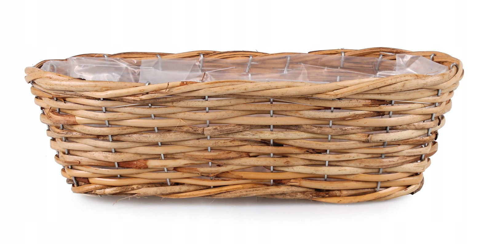 Przeznaczenie: kosz na kwiaty na balkon, rattanowa skrzynka balkonowa, skrzynka rattanowa na kwiaty, podłużny koszyk na balkon, koszyk z folią na kwiaty, rattanowy kosz balkonowy, rattanowa balkonówka, osłona na doniczki z rattanu Specyfikacja