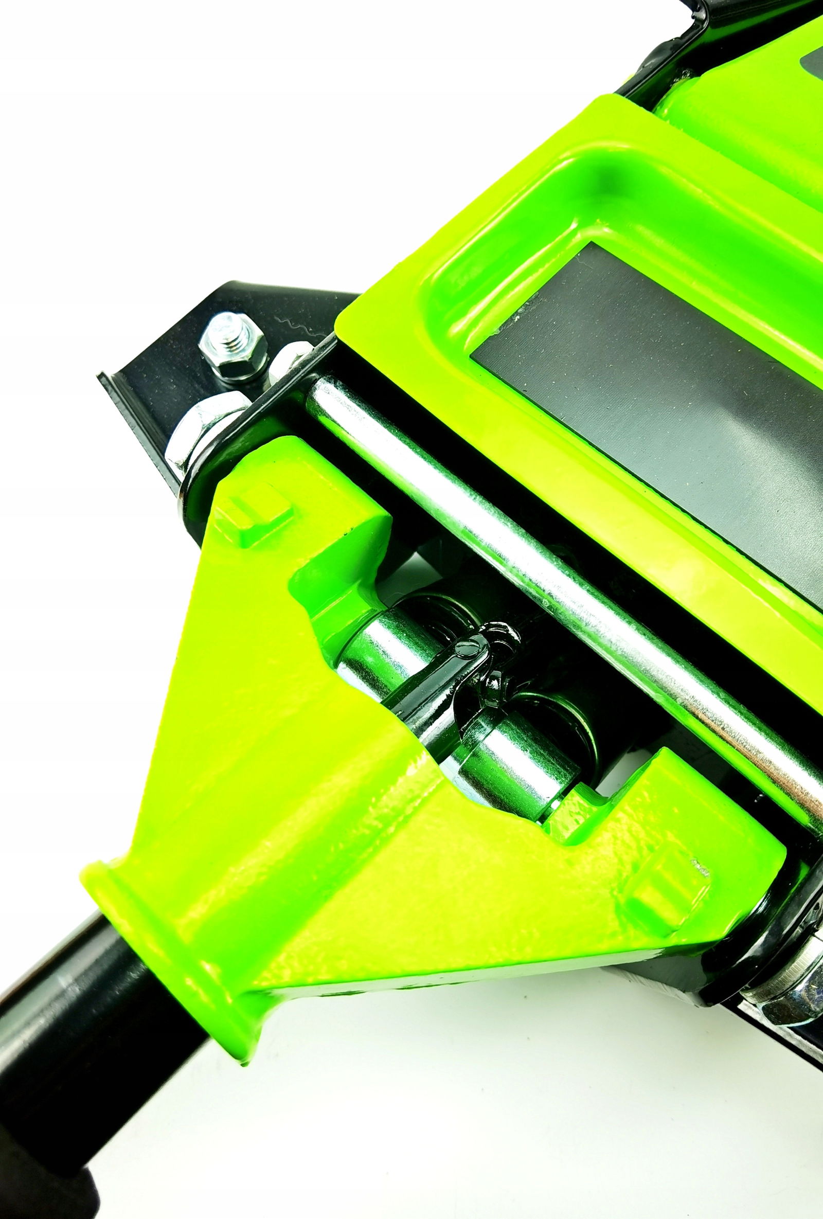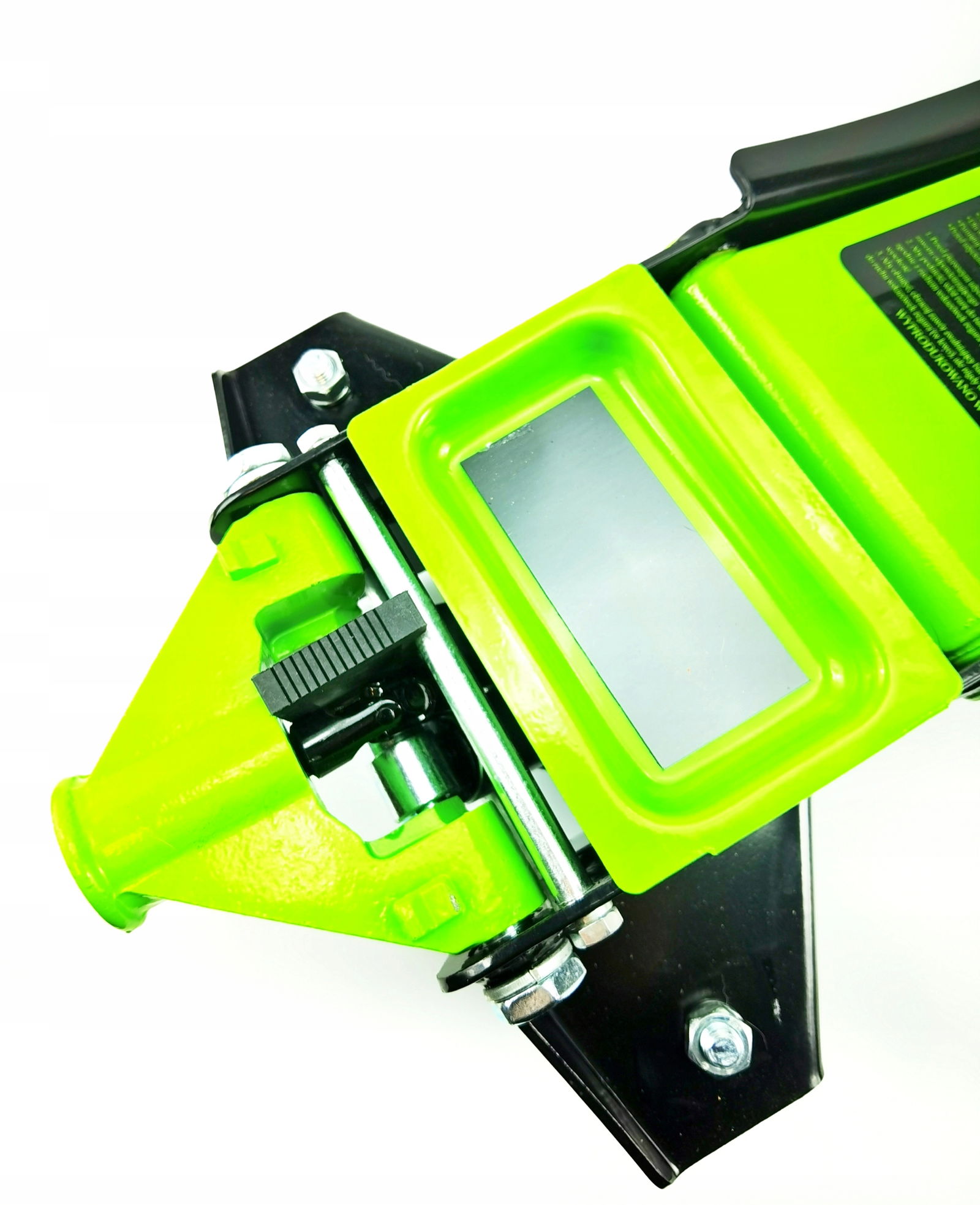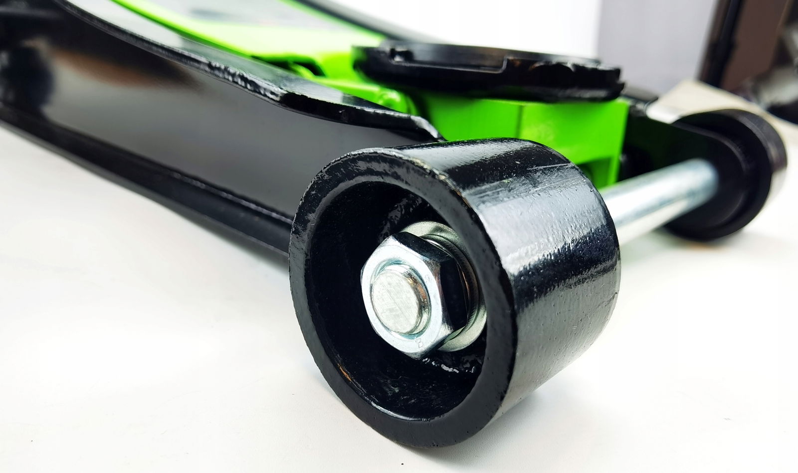 - Podnośnik posiada koła jezdne dzięki czemu jest wygodniejszy w użytkowaniu. Tylne stałe, przednie łożyskowane skrętne