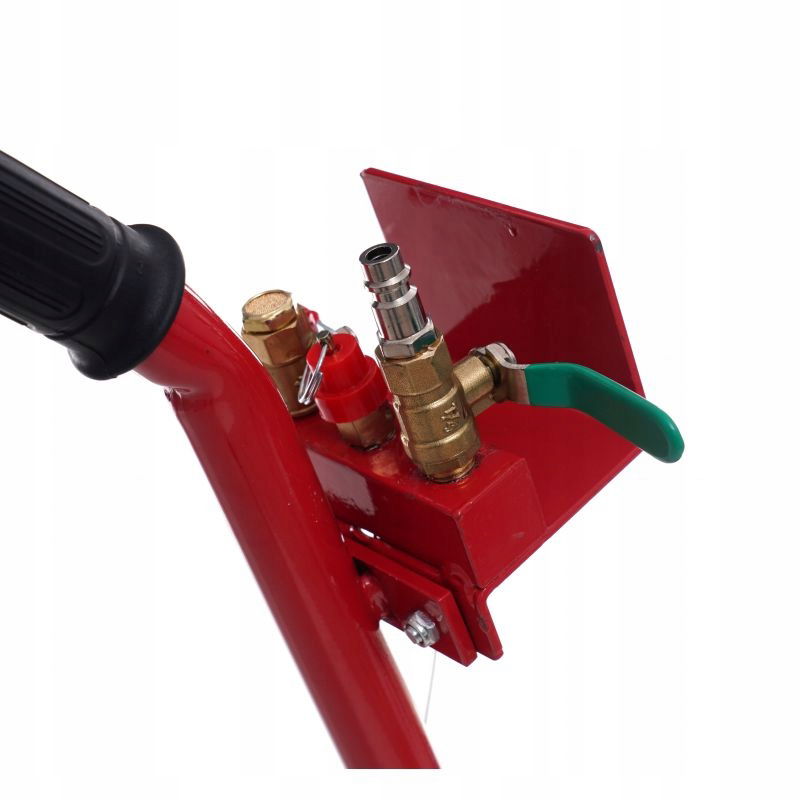 Profesjonalne, solidne narzędzie wykonane z bardzo mocnego i odpornego na złe warunki atmosferyczne materiału. Posiada zawór spustowy zintegrowany z zaworem bezpieczeństwa.