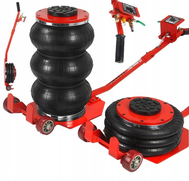 Warsztatowy podnośnik pneumatyczny 3,5T typu bałwanek, wykonany z bardzo wysokiej jakości materiałów. Podnośnik pneumatyczny jest przeznaczony do prac w których wymagane jest podnoszenie dużych ciężarów. Podnośnik przeznaczony jest do pracy w warsztatach samochodowych, wulkanizacjach, gospodarstwach rolniczych i miejscach gdzie występuje potrzeba podnoszenia urządzeń i maszyn.