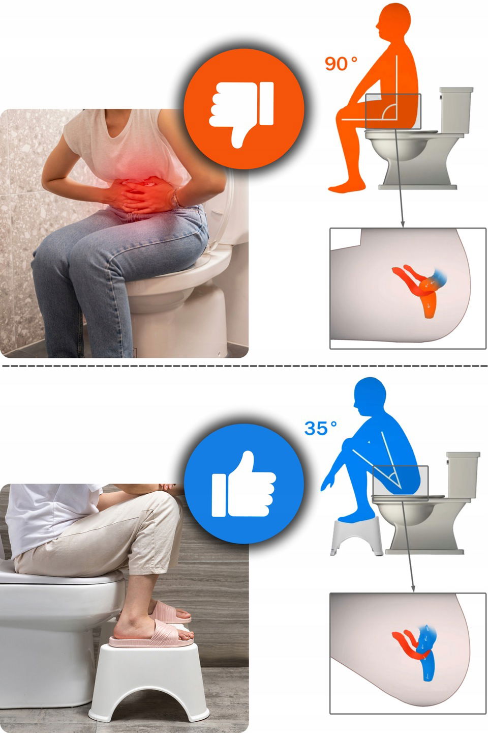 ✅Wielu lekarzy z różnych dziedzin medycyny naturalnej od wielu lat pracują nad zagrożeniem jakie niesie ze sobą nieprawidłowe wypróżnianie. Zwrócili oni na zagrożenia wynikające z kształtu toalet ale również dowiedli, że wypróżnianie w pozycji z uniesionymi nogami jest pełniejsze i łatwiejsze.