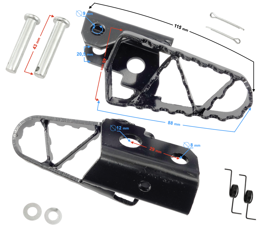 Podnóżnek lewy i prawy Cross 125cc Barton NXT 125 -Kayo, Apollo, Diabolini, Xmotos /// MorettiKod produktu: ⭐️ Produkt przeznaczony do Barton NXT 125 może również pasować do innych pojazdów typu Cross 125 cc *takich jak: