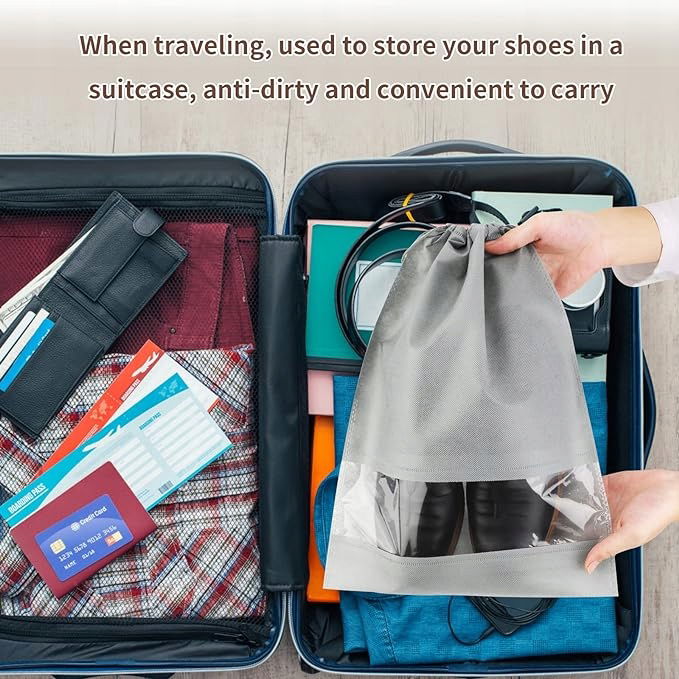 Pyłoszczelne i nie zajmują dużo miejsca – kieszenie na buty chronią buty przed kurzem. Utrzymuj buty w czystości i porządku. Udaj się w podróż, zmniejsz wysiłek noszenia butów podczas podróży, co nie tylko oszczędza miejsce, ale również skutecznie chroni buty przed kurzem.