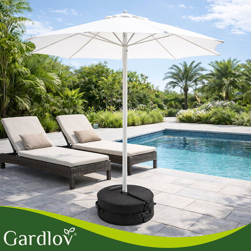 Wiatr potrafi skutecznie zepsuć odpoczynek w ogrodzie - chwiejny parasol to stres i ryzyko uszkodzeń. Ta baza Gardlov po napełnieniu piaskiem dociąża podstawę nawet do 40 kg, aby parasol stał stabilnie i bezpiecznie w jednym miejscu.