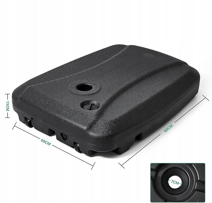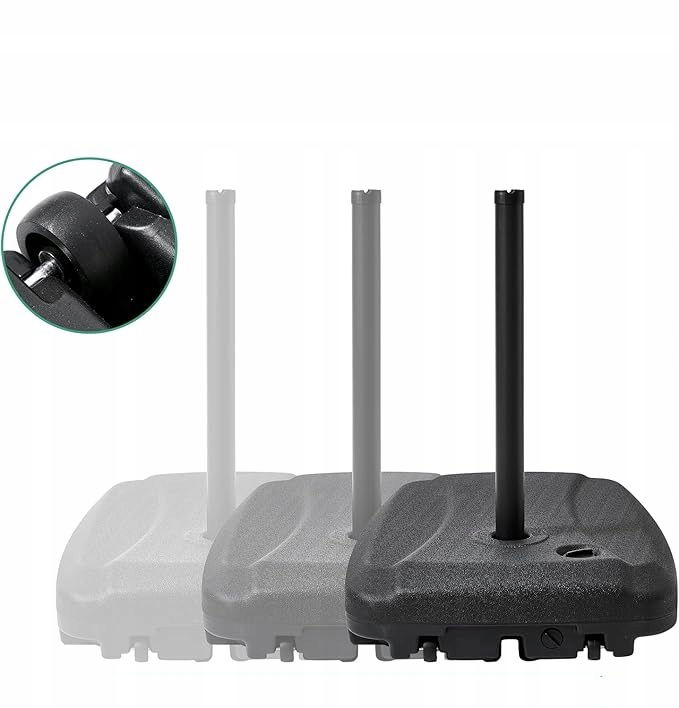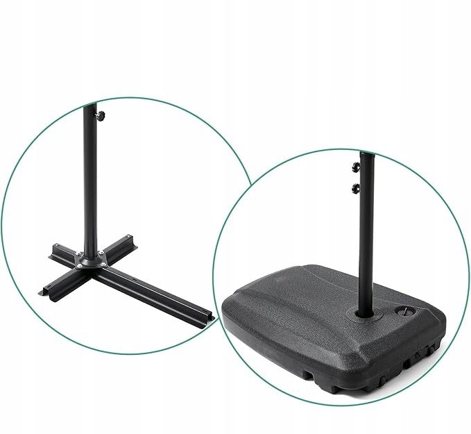- Wytrzymała podstawa parasola: Utrzymuj parasol stabilnie i bezpiecznie dzięki plastikowej podstawie parasola OMERAI Wykonany z trwałego, odpornego na warunki atmosferyczne tworzywa sztucznego HDPE z zakrętką do łatwego napełniania piaskiem lub wodą. Podstawa parasola jest wyposażona w dwa adaptery do mocowania drążków parasolowych.