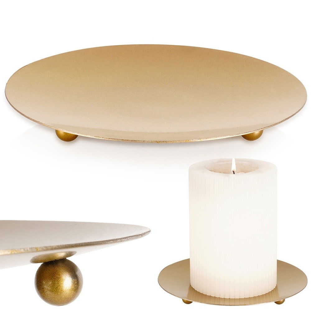 PODSTAWKA NA ŚWIECZKĘ ŚWIECĘ PODKŁADKA METALOWA ZŁOTA STOJAK ŚWIECZNIK