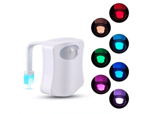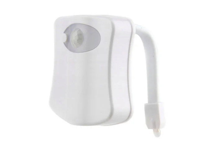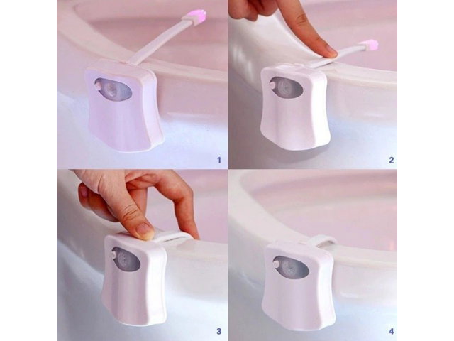 ELASTYCZNY UCHWYT – możemy szybko i łatwo zamocować lampkę na brzegu toalety bez używania dodatkowych narzędzi. CZUJNIK RUCHU – lampka działa tylko wtedy, kiedy osoba znajduje się w pobliżu; oszczędność baterii. SPECYFIKACJA – wymiary (wys//szer/głę) 6,8 x 6,7 x 1,8 cm; waga 43,1g. WYDAJNA DIODA – oświetlenie LED świeci jasnym i nasyconym światłem. ZMIANA BARWY – lampka emituje 8 kolorów WYBÓR SPOSOBU ŚWIECENIA – praktyczny przycisk pozwala na zmianę ustawień Posiada czujnik ruchu, który jest sporym ułatwieniem i jednocześnie wpływa na oszczędność baterii (przedłuża czas funkcjonowania urządzenia). Lampka działa tylko i wyłącznie wtedy, kiedy osoba znajduje się w pobliżu. Wyposażona jest w wydajną diodę, która emituje jasne i nasycone barwy. Za pomocą małego przycisku na zewnętrznej stronie lampki możemy zmieniać, w zależności od potrzeb, tryb świecenia diody – tryb mix (8 rożnych kolorów zmieniających się płynnie) lub tylko 1 kolor. Kolor obudowy jest biały, co wpływa na to, iż lampka nie jest zbyt widoczna na urządzeniu sanitarnym, a tym samym nie wyróżnia się na tle toalety.