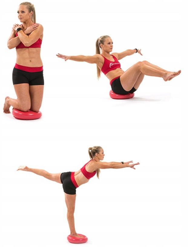Poduszka sensoryczna wykorzystywana jest przez rehabilitantów oraz instruktorów fitness do takich ćwiczeń jak: